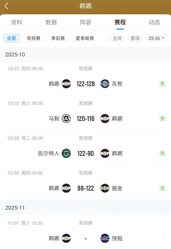 2025-10-31 16:52:17西部唯一不胜球队!鹈鹕0-4场均得分&命中率联盟倒一&近2场输66分
