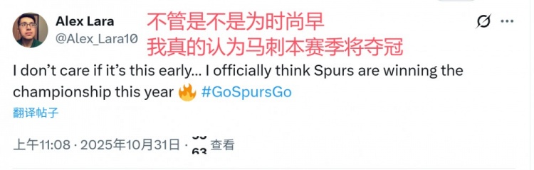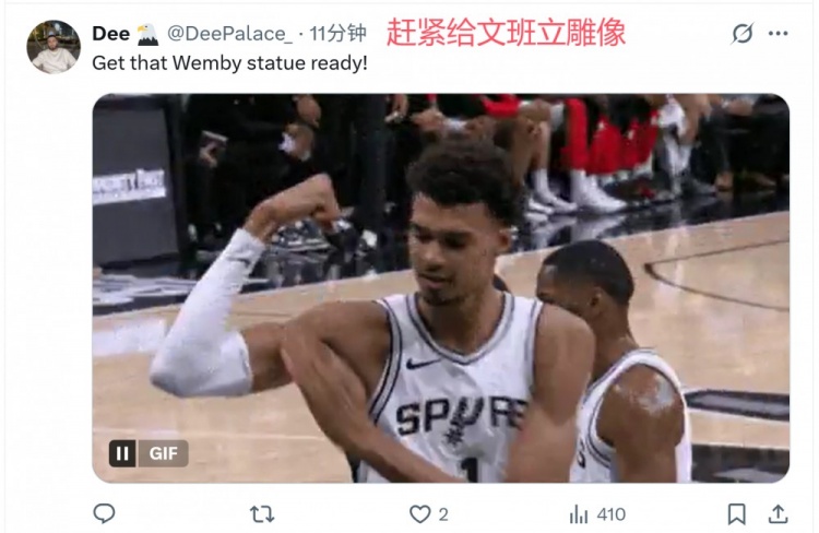 2025-10-31 16:53:04开季5胜0负!美刺蜜:赶紧给文班亚马立雕像 本赛季马刺总冠军