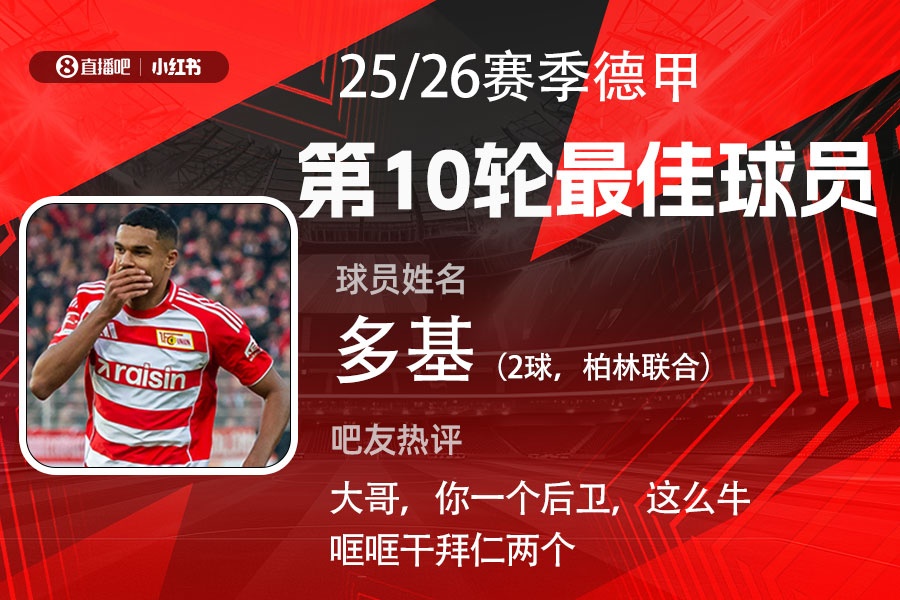 2025-11-12 00:04:05直播吧X小红书|德甲第10轮最佳:后卫12场6球!多基终结拜仁纪录